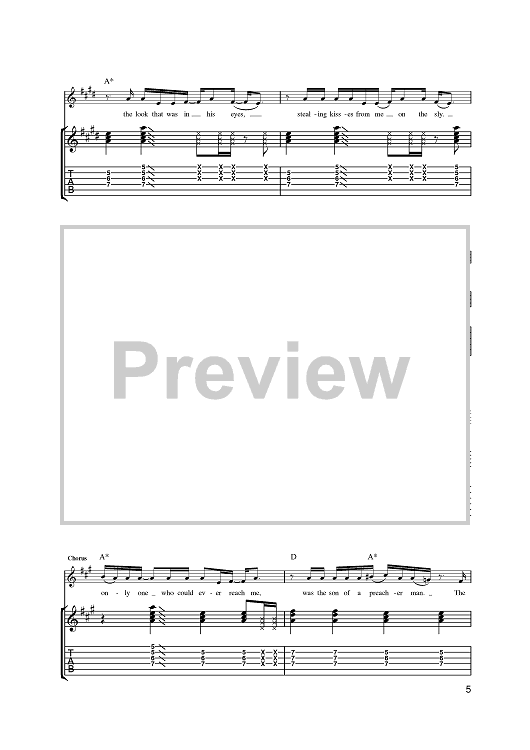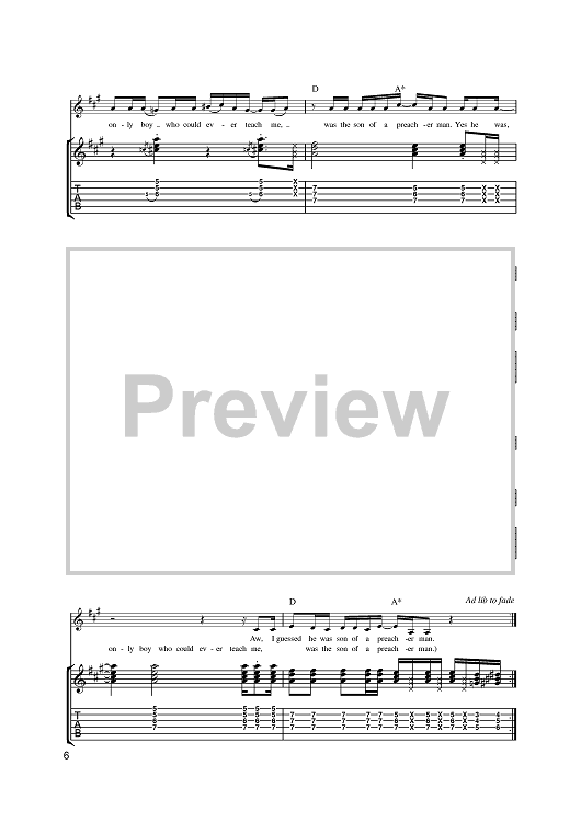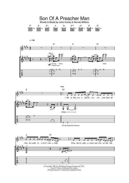 Digital Sheet Music for Son Of A Preacher Man by Tanya Tucker, Dusty Springfield, John Hurley, Ronnie Wilkins scored for Guitar Tab; id:383235