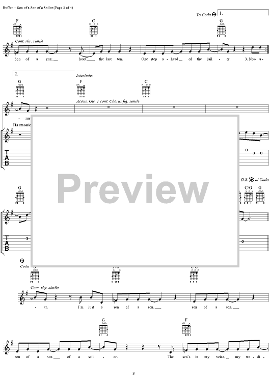 "Son of a Son of a Sailor" Sheet Music by Jimmy Buffett