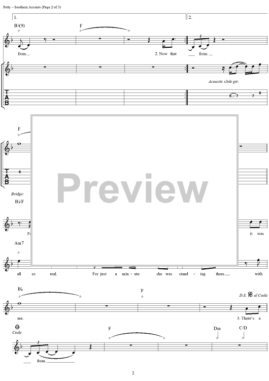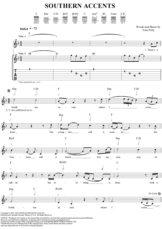 Digital Sheet Music for Southern Accents by Tom Petty scored for Guitar Tab/Vocal; id:113784