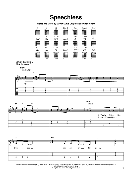 Digital Sheet Music for Speechless by Geoff Moore, Steven Curtis Chapman scored for Easy Guitar Tab; id:387088