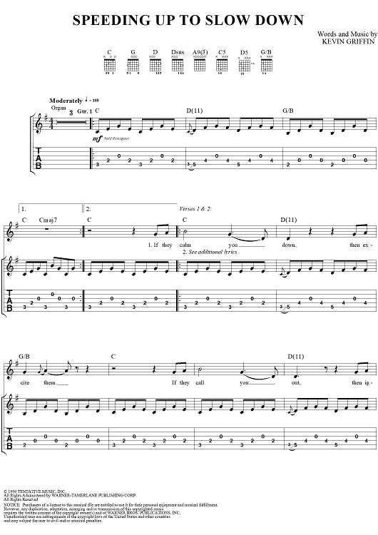 Digital Sheet Music for Speeding Up To Slow Down by Better Than Ezra, Kevin Griffin scored for Guitar Tab/Vocal; id:112233