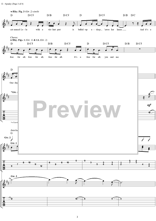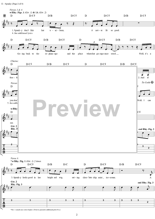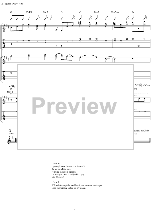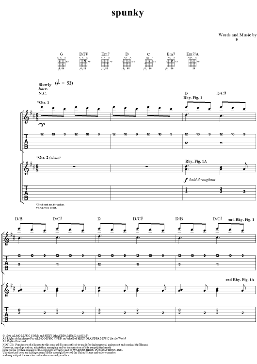 Digital Sheet Music for Spunky by Mark Everett, Eels scored for Guitar Tab/Vocal; id:124361