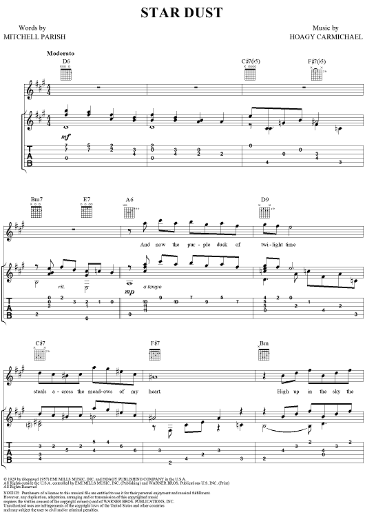 "Star Dust" Sheet Music by Hoagy Carmichael