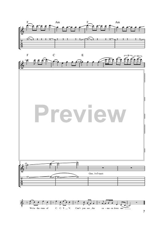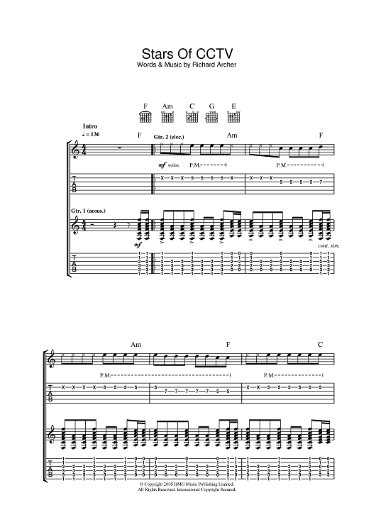 Digital Sheet Music for Stars Of CCTV by Richard Archer, Hard-Fi scored for Guitar Tab; id:387016