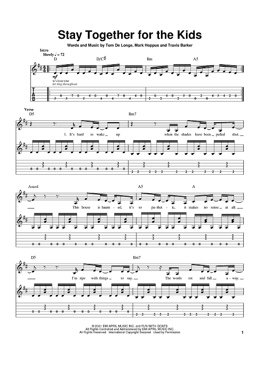 Digital Sheet Music for Stay Together For The Kids by Travis Barker, Mark Hoppus, blink-182, Tom DeLonge scored for Guitar Tab; id:389119
