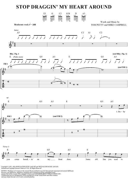 Digital Sheet Music for Stop Draggin' My Heart Around by Stevie Nicks, Tom Petty, Mike Campbell scored for Guitar Tab/Vocal; id:113786