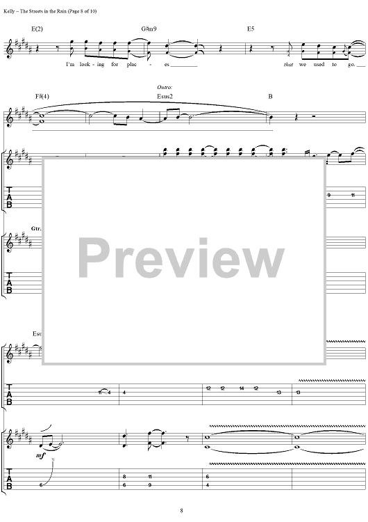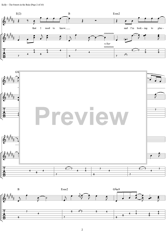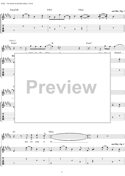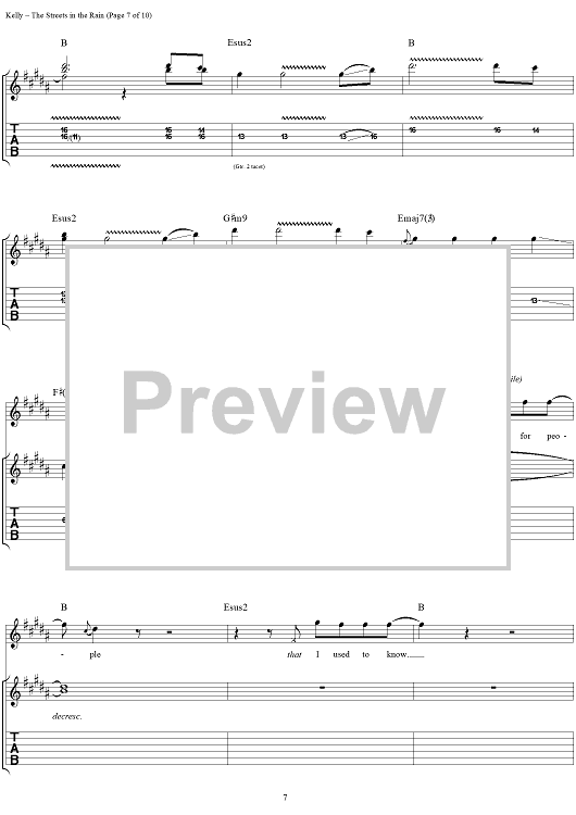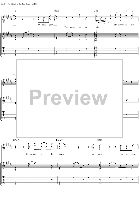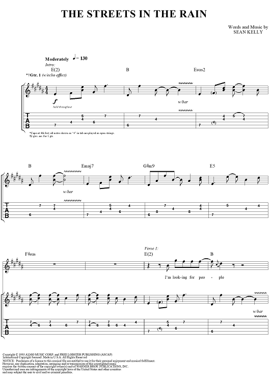 Digital Sheet Music for Streets in the Rain, The by The Samples, Sean Kelly scored for Guitar Tab/Vocal; id:250153