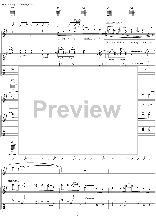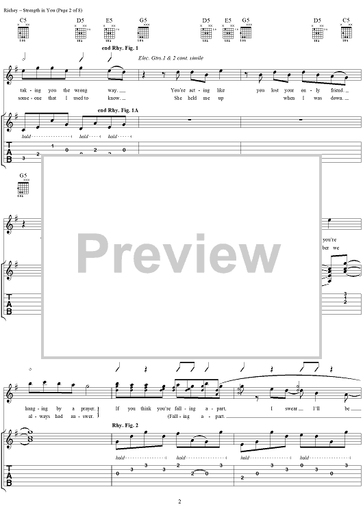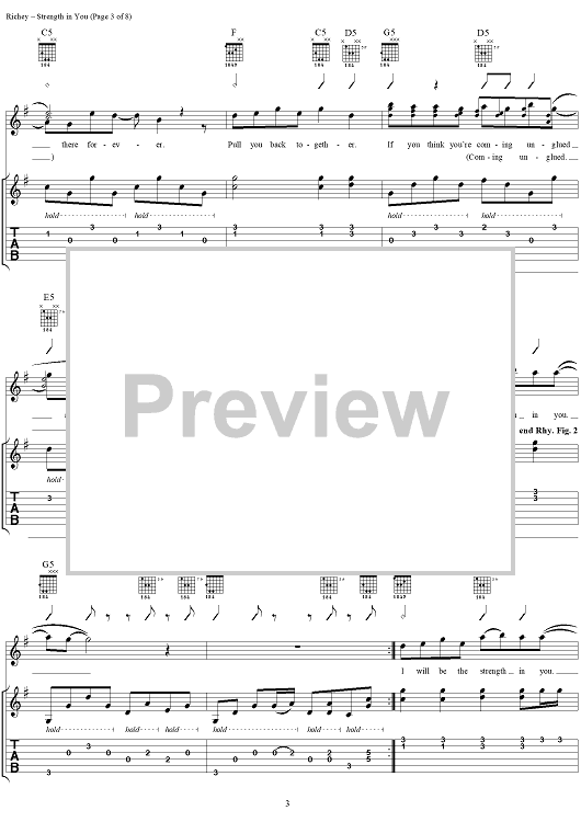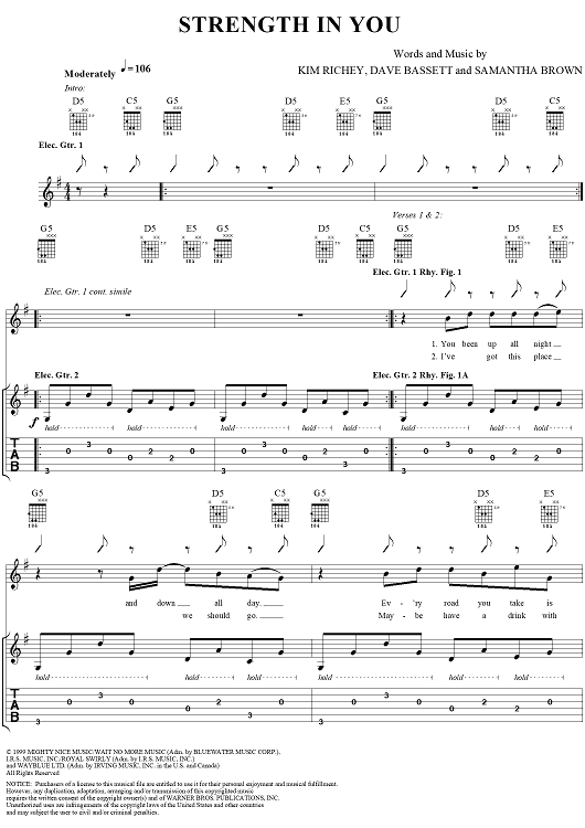 Digital Sheet Music for Strength in You by Kim Richey, Samantha Brown, Dave Bassett scored for Guitar Tab/Vocal; id:234531
