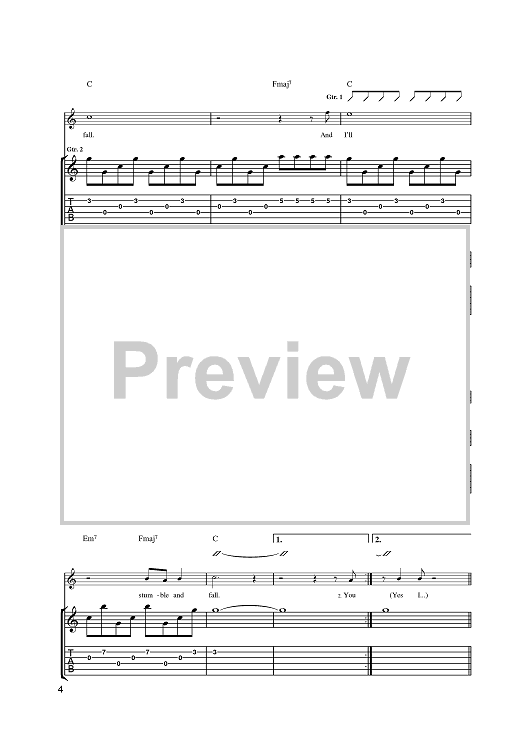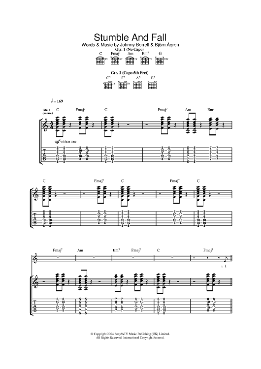 Digital Sheet Music for Stumble And Fall by Bjorn Agren, Johnny Borrell, Razorlight scored for Guitar Tab; id:381305