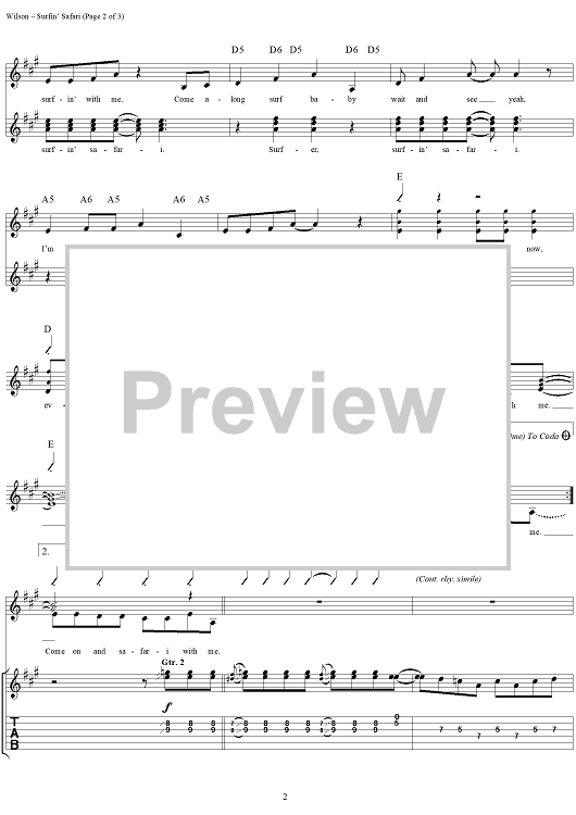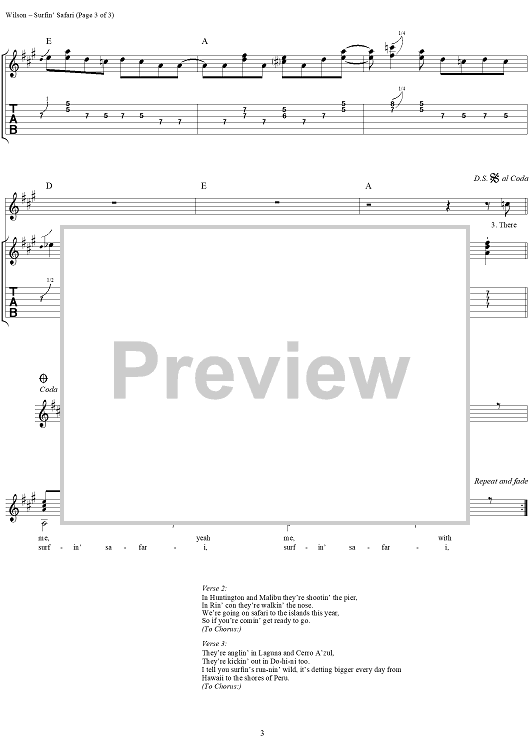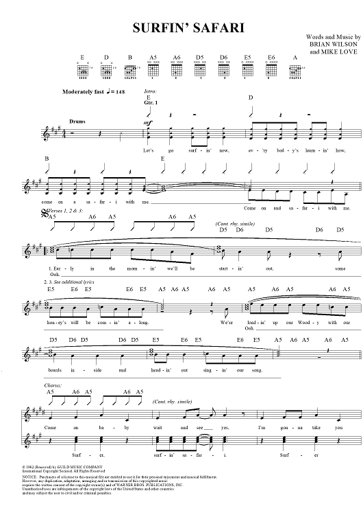 "Surfin' Safari" Sheet Music by The Beach Boys