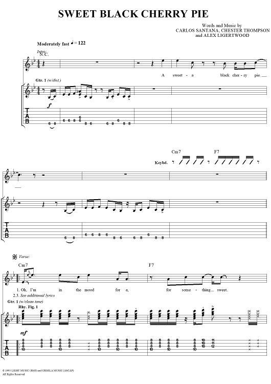 "Sweet Black Cherry Pie" Sheet Music by Carlos Santana