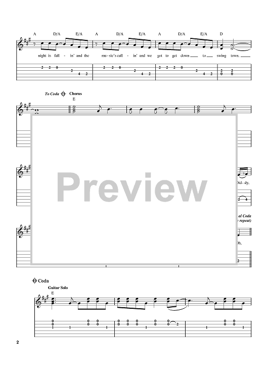 Digital Sheet Music for Swingtown by Steve Miller, Chris McCarty, Steve Miller Band scored for Easy Guitar Tab; id:386204