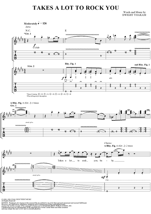 Digital Sheet Music for Takes a Lot to Rock You by Dwight Yoakam scored for Guitar Tab/Vocal; id:120065