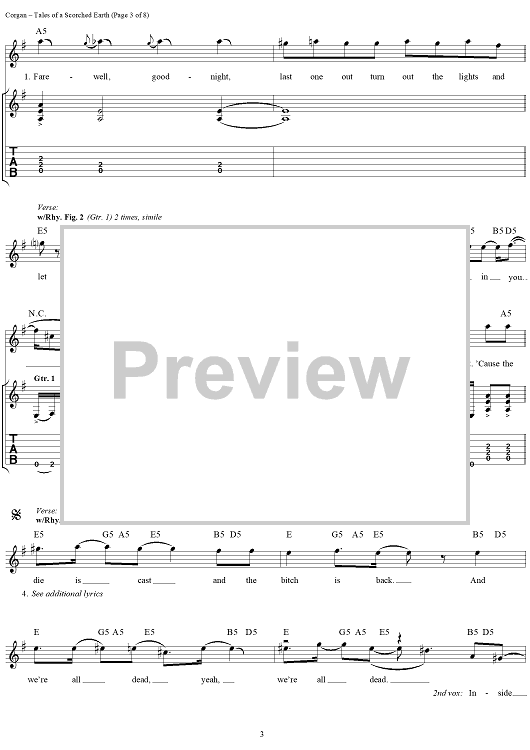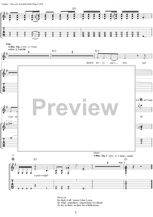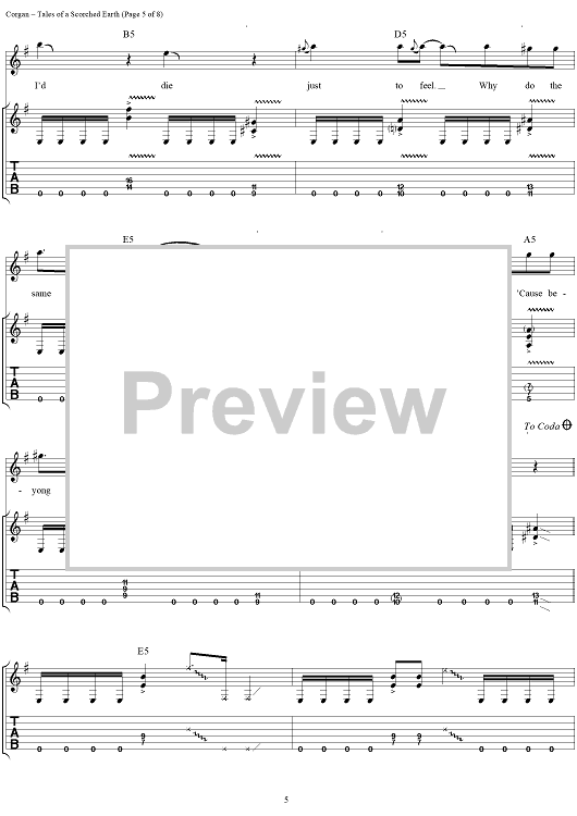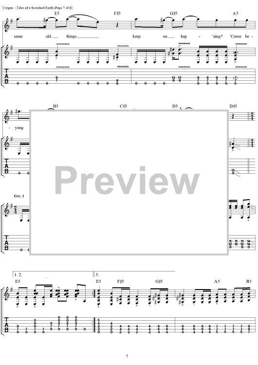 Digital Sheet Music for Tales of a Scorched Earth by Billy Corgan, Smashing Pumpkins scored for Guitar Tab/Vocal; id:272157