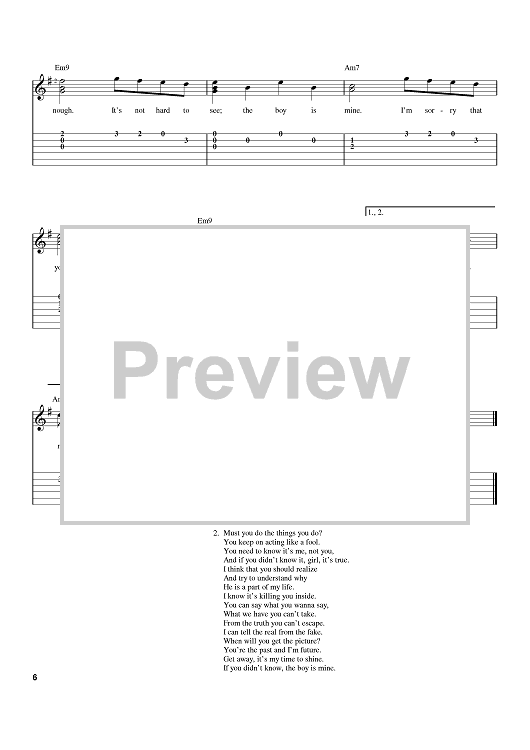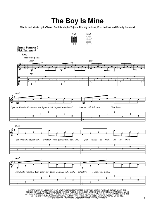 Digital Sheet Music for The Boy Is Mine by Rodney Jerkins, LaShawn Daniels, Fred Jerkins III, Brandy, Brandy Norwood, Japhe Tejeda scored for Easy Guitar Tab; id:387938