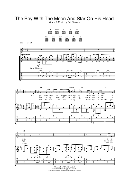 Digital Sheet Music for The Boy With The Moon And Star On His Head by Cat Stevens scored for Guitar Tab; id:375561
