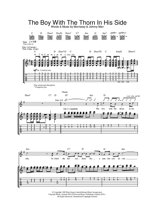 Digital Sheet Music for The Boy With The Thorn In His Side by Johnny Marr, The Smiths, Morrissey scored for Guitar Tab; id:385351