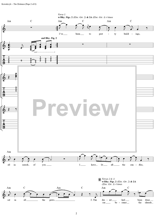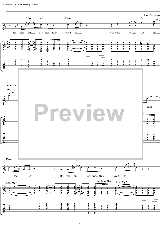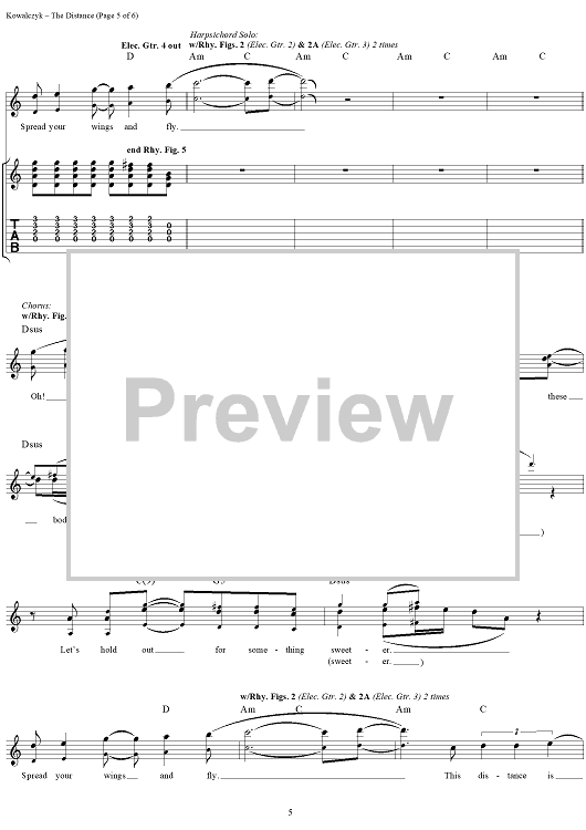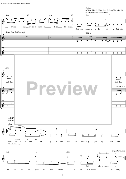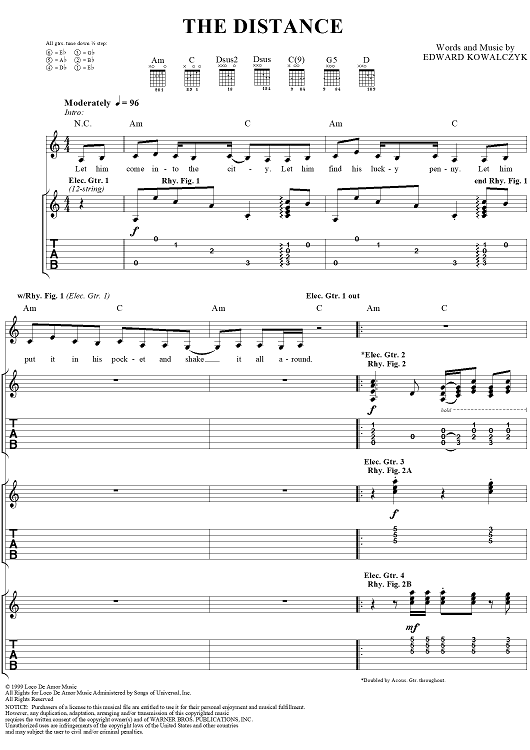 Digital Sheet Music for The Distance by Live, Edward Kowalczyk scored for Guitar Tab/Vocal; id:218978