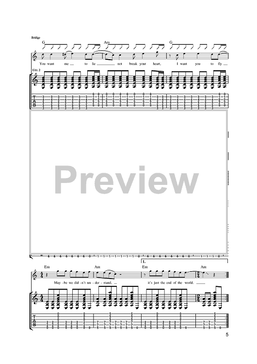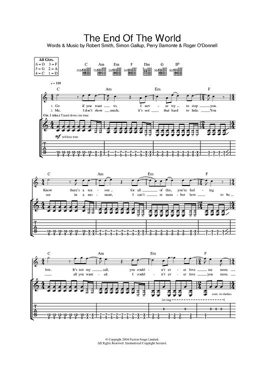 Digital Sheet Music for The End Of The World by Wolfman Jack, Perry Bamonte, The Cure, Simon Gallup scored for Guitar Tab; id:381310
