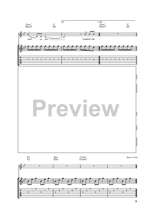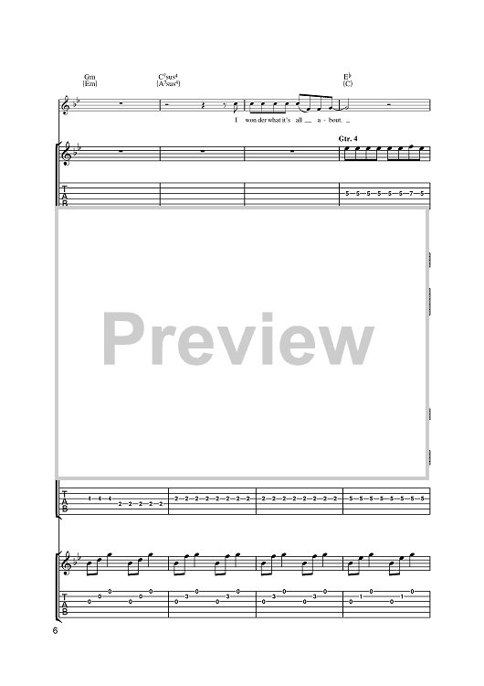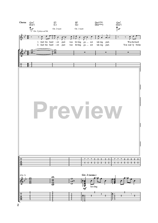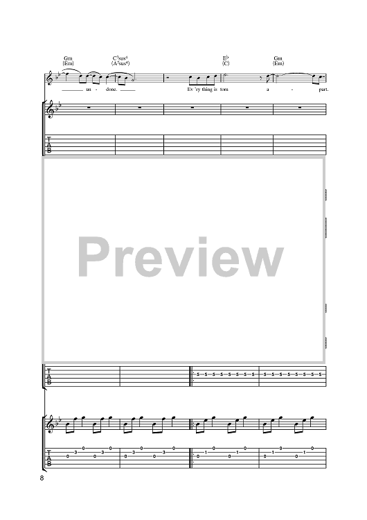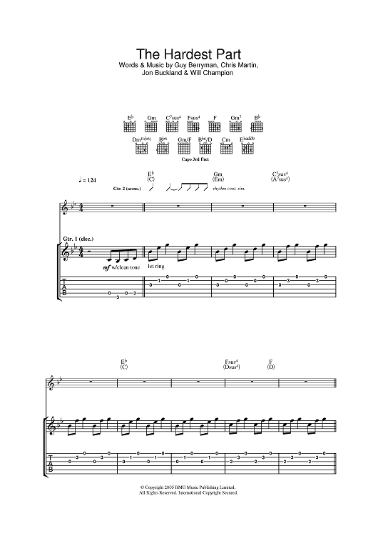 Digital Sheet Music for The Hardest Part by Chris Martin, Coldplay, Jonny Buckland, Guy Berryman scored for Guitar Tab; id:384531