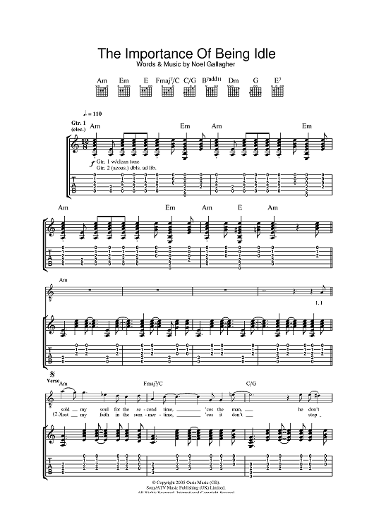 Digital Sheet Music for The Importance Of Being Idle by Noel Gallagher, Oasis scored for Guitar Tab; id:387165