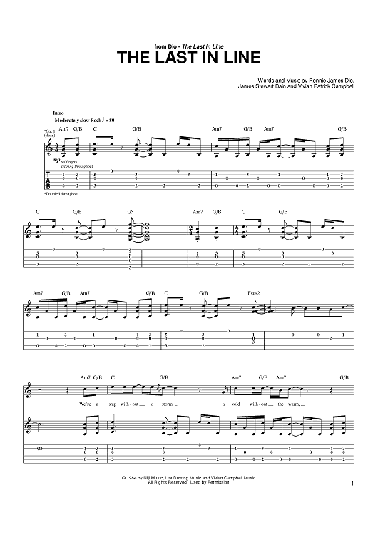 Digital Sheet Music for The Last In Line by Vivian Campbell, Jimmy Bain, Dio, Ronnie James Dio scored for Guitar Tab; id:373712