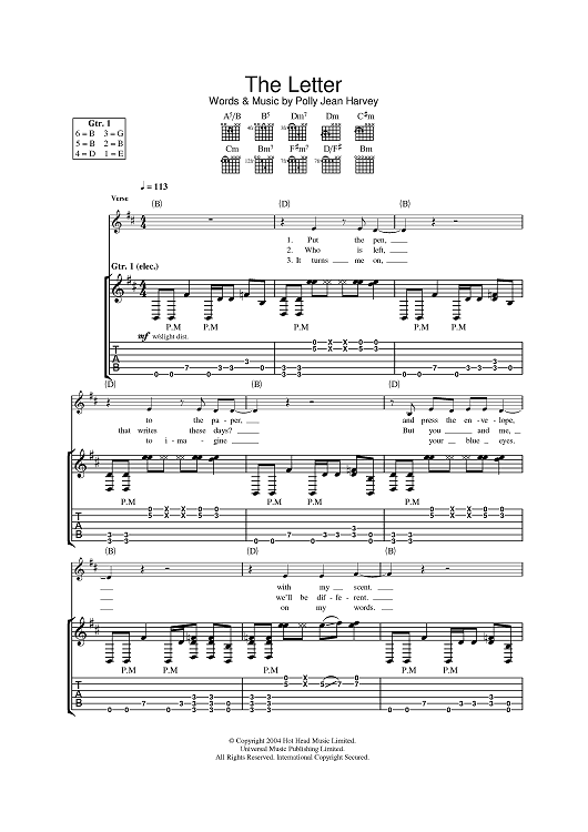 Digital Sheet Music for The Letter by P J Harvey scored for Guitar Tab; id:386975