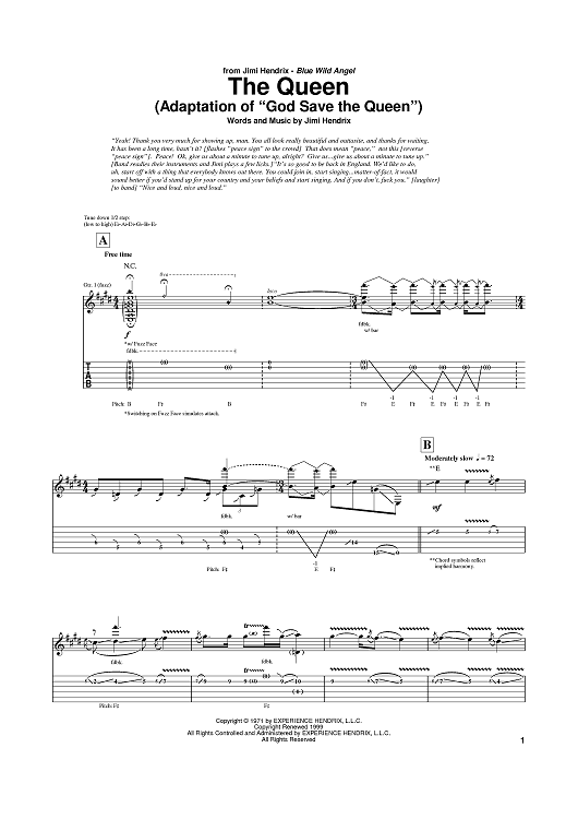 Digital Sheet Music for The Queen (Adaptation of "God Save The Queen") by Jimi Hendrix scored for Guitar Tab; id:385255