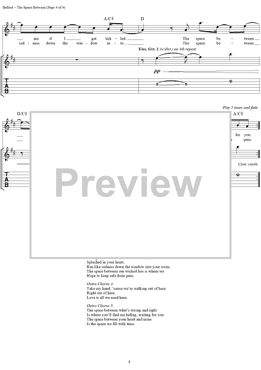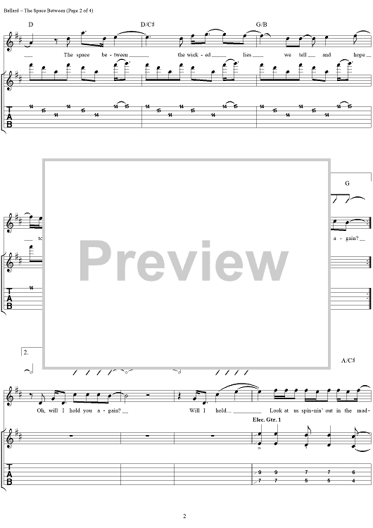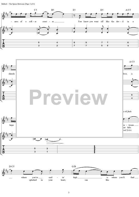 "The Space Between" Sheet Music by Dave Matthews Band
