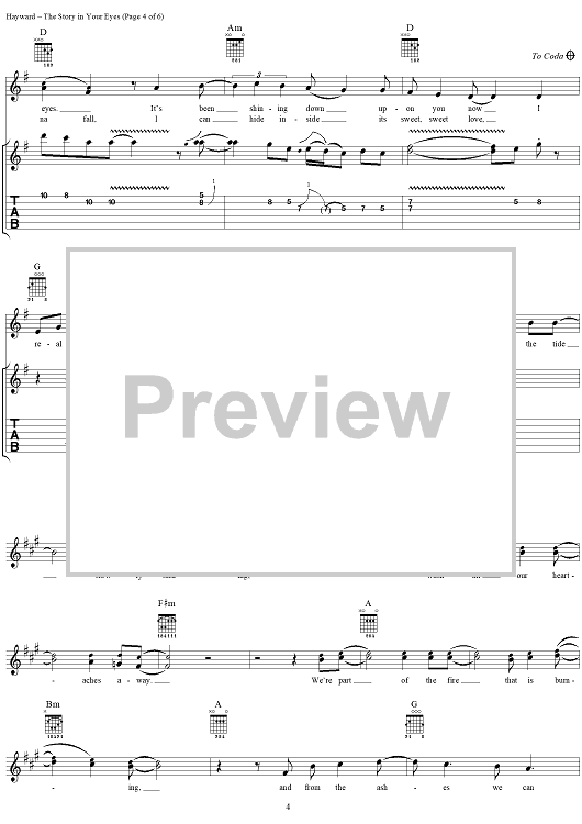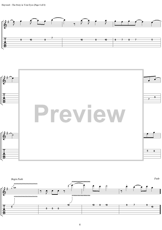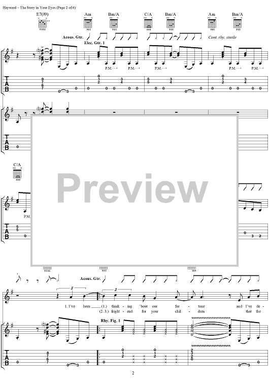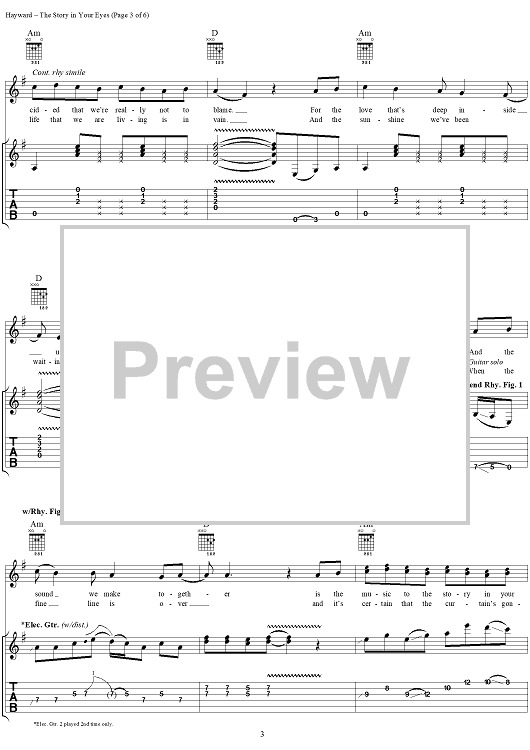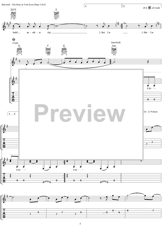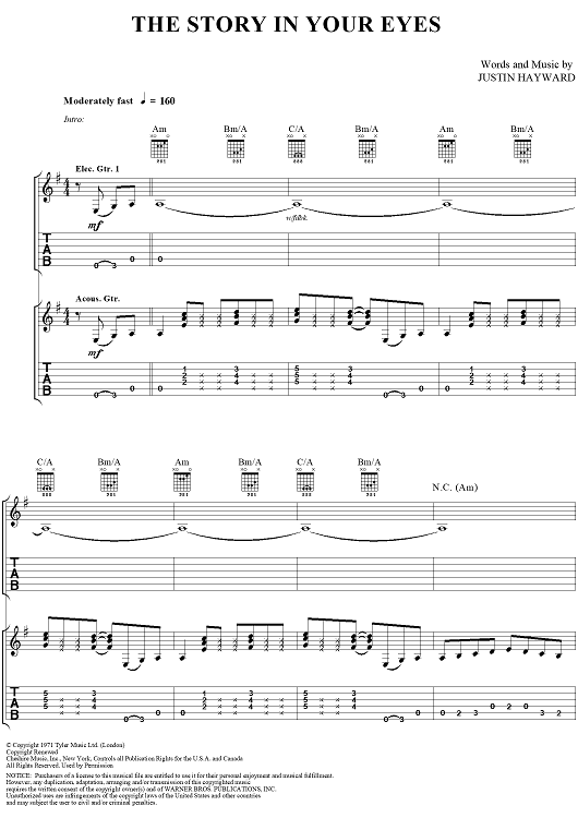 Digital Sheet Music for The Story in Your Eyes by Justin Hayward, Moody Blues scored for Guitar Tab/Vocal; id:288379