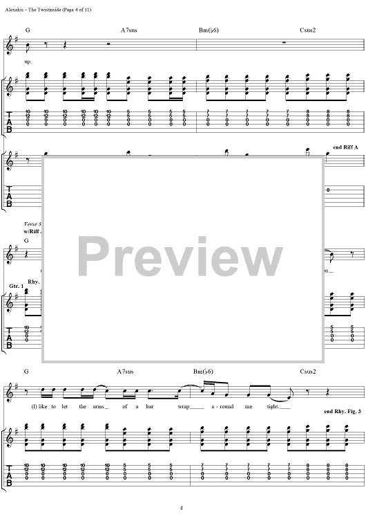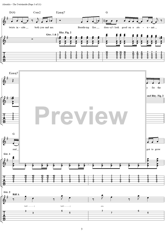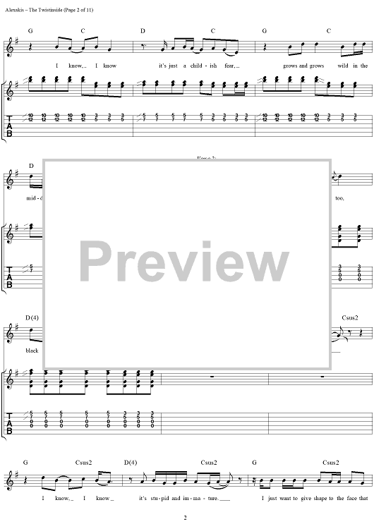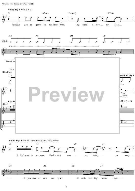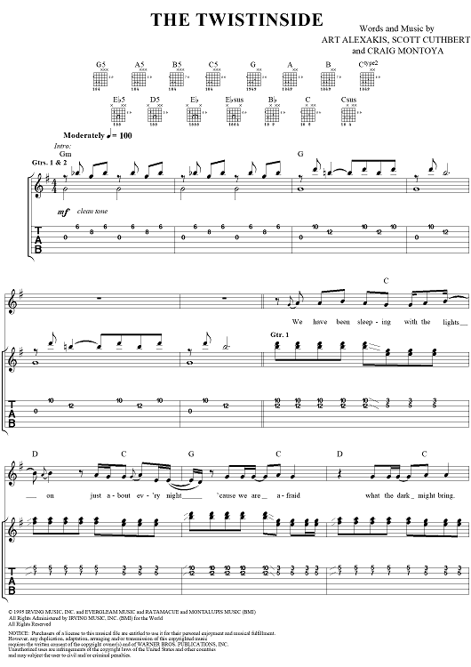 Digital Sheet Music for The Twistinside by Everclear, Art Alexakis, Scott Cuthbert, Craig Montoya scored for Guitar Tab/Vocal; id:119620