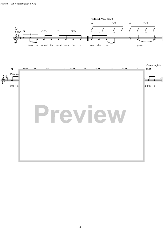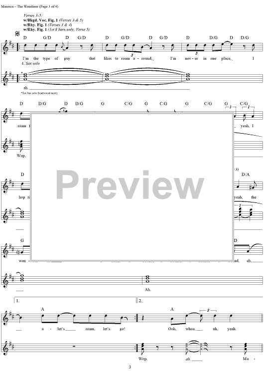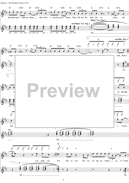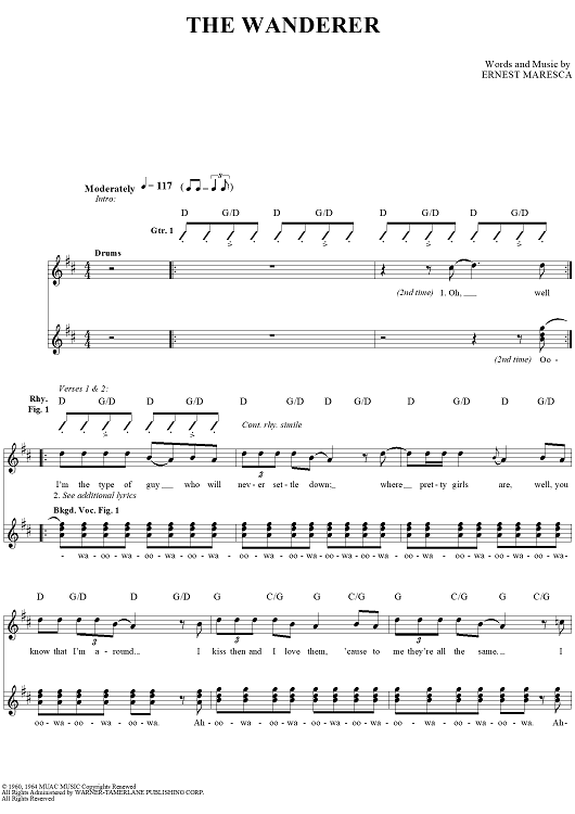Digital Sheet Music for The Wanderer by Kenn Chipkin, Ernest Maresca, Dion and the Belmonts scored for Guitar Tab/Vocal; id:251512
