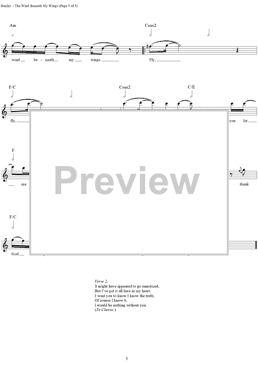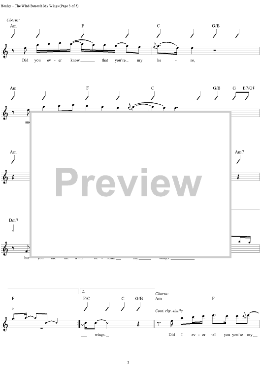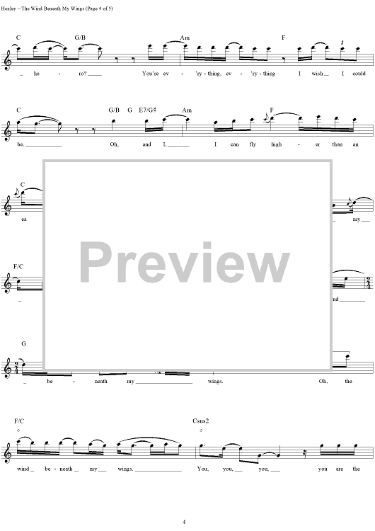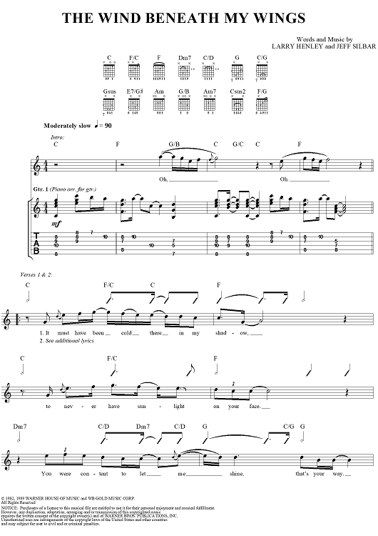 "The Wind Beneath My Wings" Sheet Music by Bette Midler