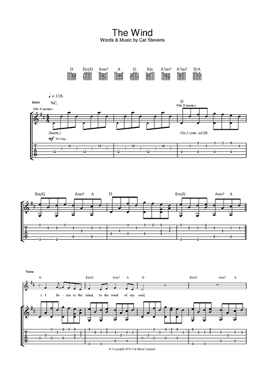 Digital Sheet Music for The Wind by Cat Stevens scored for Guitar Tab; id:375564