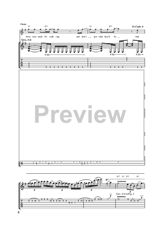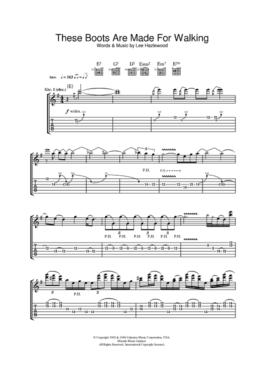 Digital Sheet Music for These Boots Are Made For Walking by Lee Hazlewood, Megadeth scored for Guitar Tab; id:389148