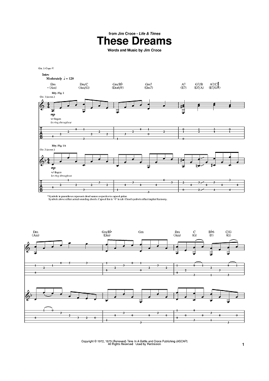 Digital Sheet Music for These Dreams by Jim Croce scored for Guitar Tab; id:383560