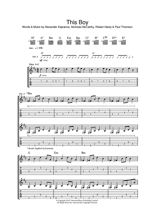 Digital Sheet Music for This Boy by Franz Ferdinand, Robert Hardy, Alexander Kapranos, Nicholas McCarthy, Paul Thomson scored for Guitar Tab; id:387991