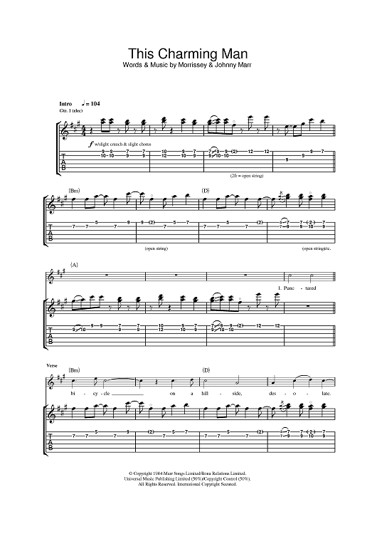 Digital Sheet Music for This Charming Man by Johnny Marr, The Smiths, Morrissey scored for Guitar Tab; id:386978