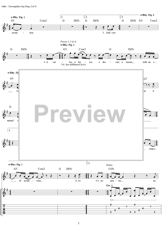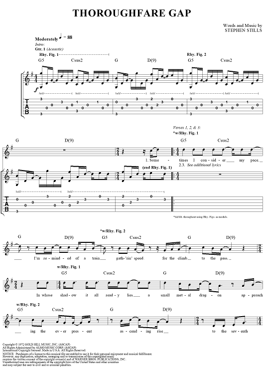 "Thoroughfare Gap" Sheet Music by Crosby, Stills & Nash