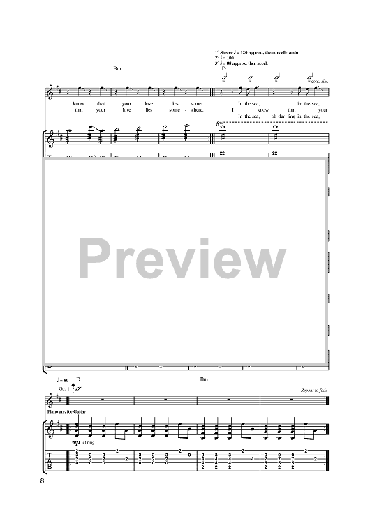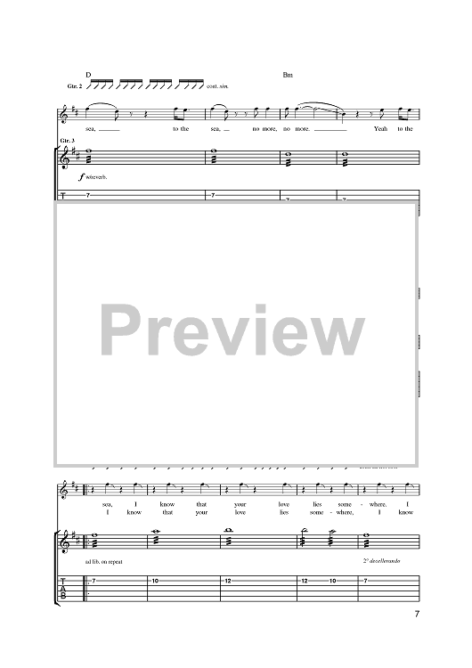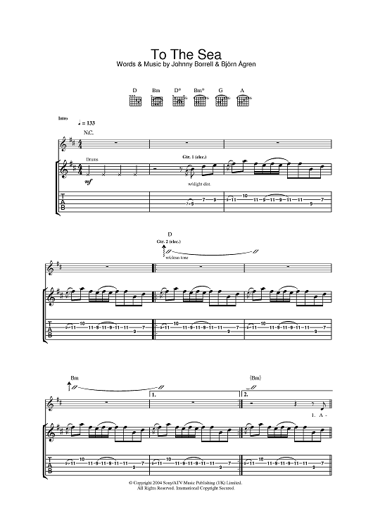 Digital Sheet Music for To The Sea by Bjorn Agren, Johnny Borrell, Razorlight scored for Guitar Tab; id:385706