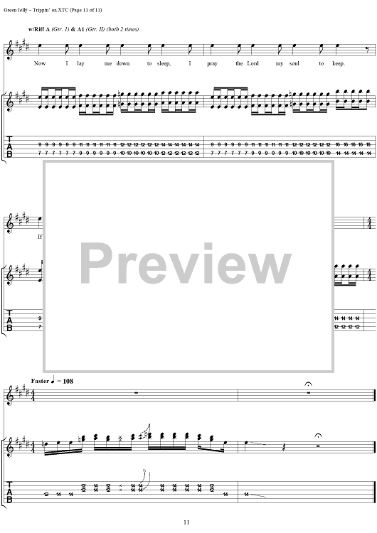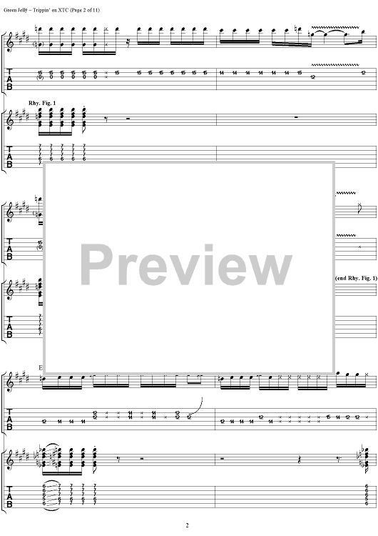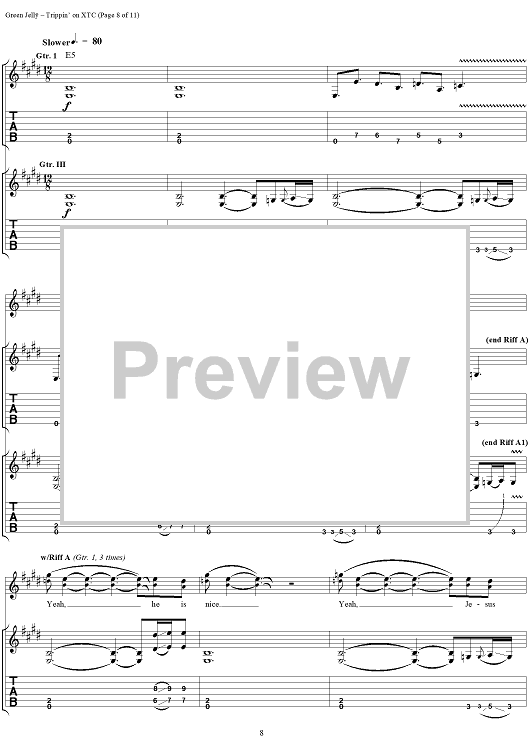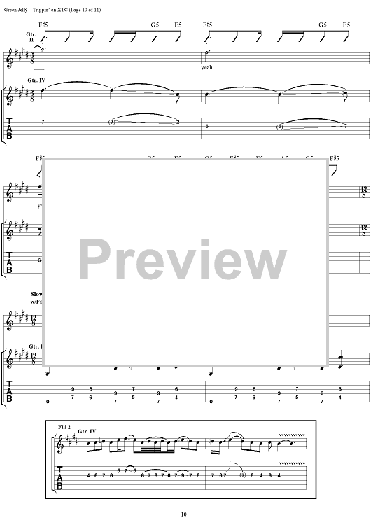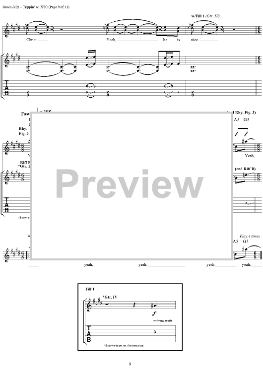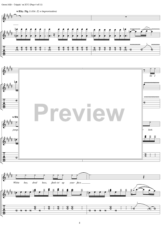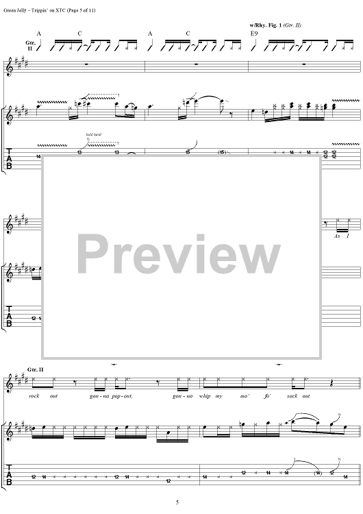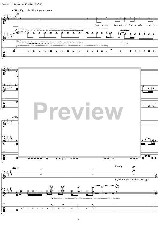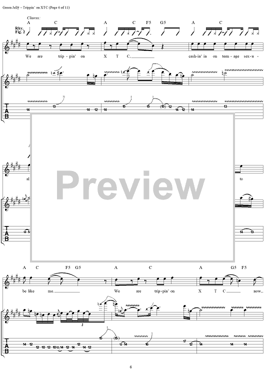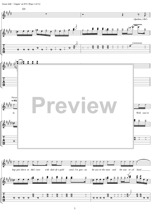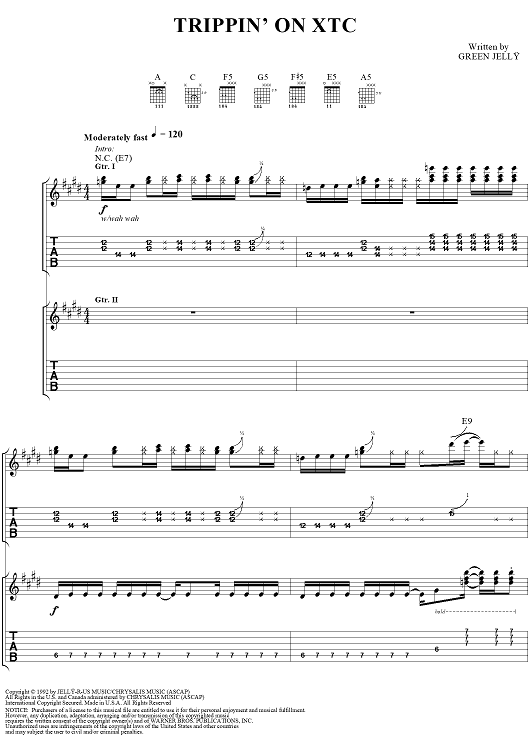 Digital Sheet Music for Trippin' On XTC by Green Jelly scored for Guitar Tab/Vocal; id:120680