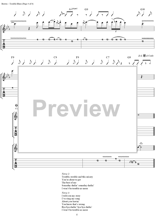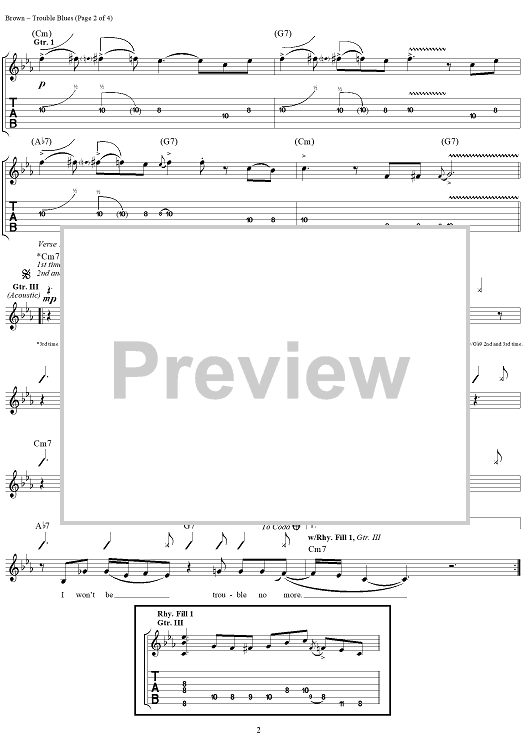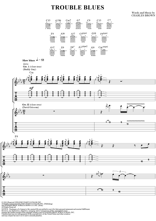Digital Sheet Music for Trouble Blues by Buddy Guy, Charles Brown scored for Guitar Tab/Vocal; id:131713