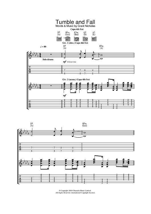 Digital Sheet Music for Tumble And Fall by Feeder, Nicholas Grant, Grant Nicholas scored for Guitar Tab; id:383406