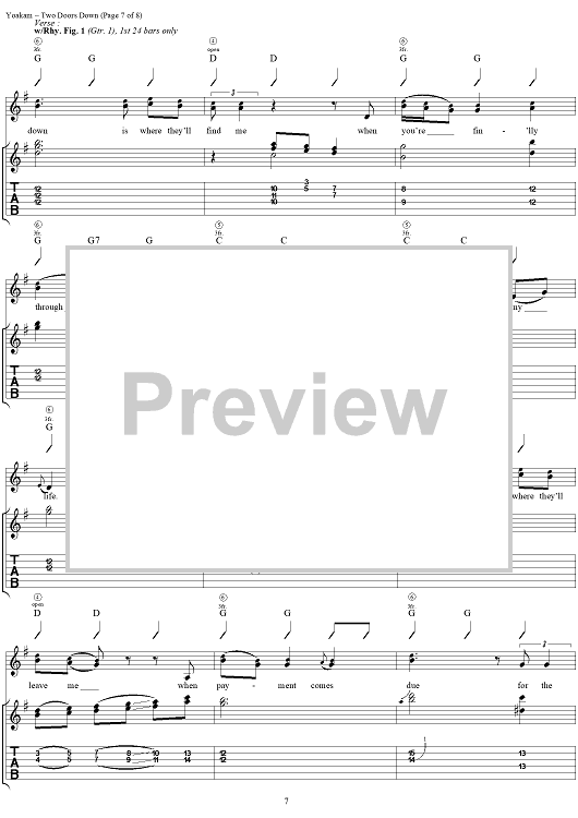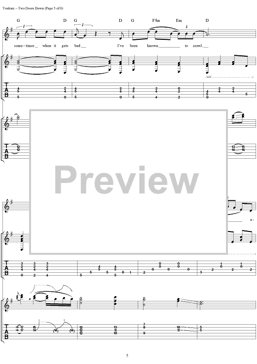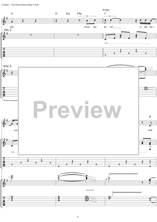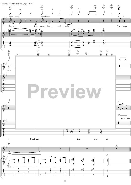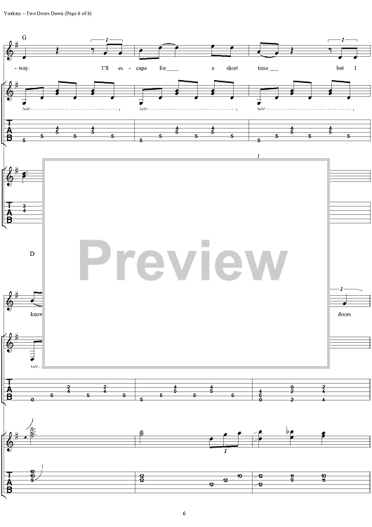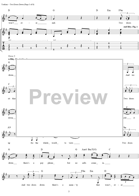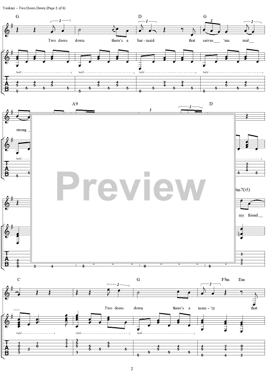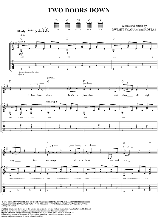 Digital Sheet Music for Two Doors Down by Kostas, Dwight Yoakam scored for Guitar Tab/Vocal; id:120064