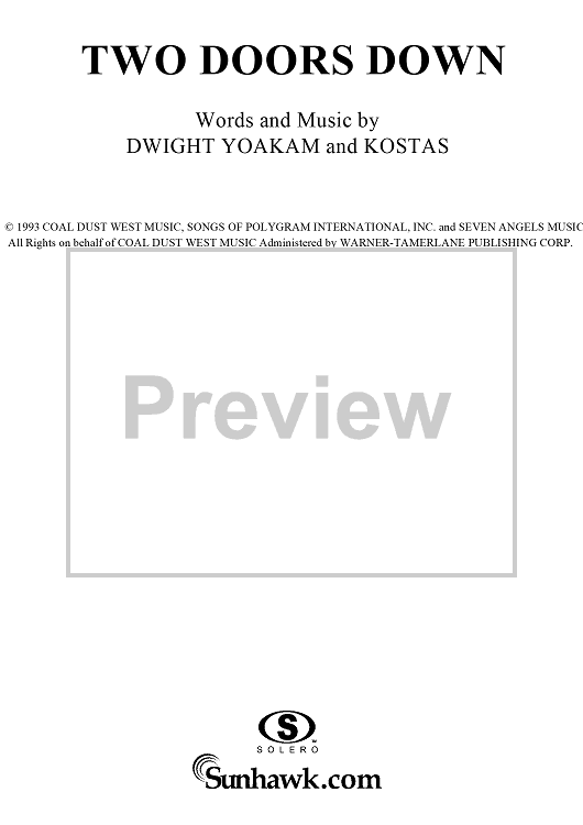 "Two Doors Down" Sheet Music by Dwight David Yoakam