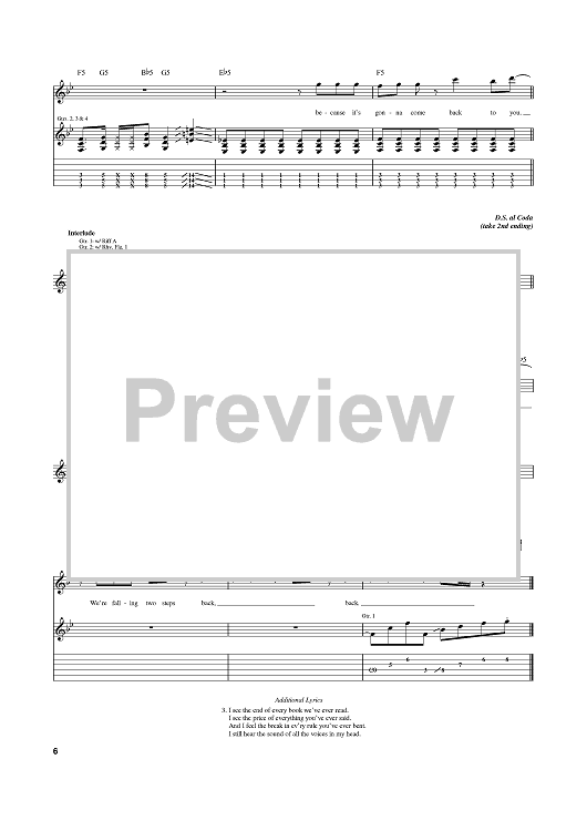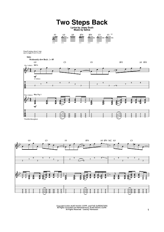 Digital Sheet Music for Two Steps Back by Saliva, Josey Scott scored for Guitar Tab; id:383157
