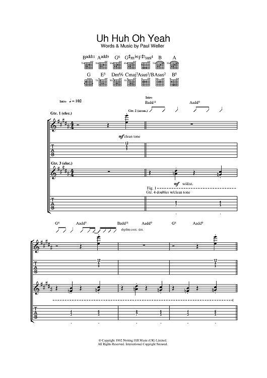 Digital Sheet Music for Uh Huh Oh Yeh by Paul Weller scored for Guitar Tab; id:388316