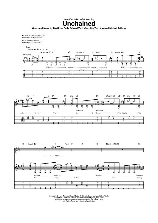 Digital Sheet Music for Unchained by Eddie Van Halen, David Lee Roth, Michael Anthony, Alex Van Halen, Van Halen scored for Guitar Tab; id:385952