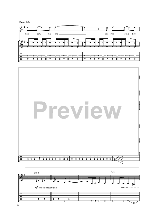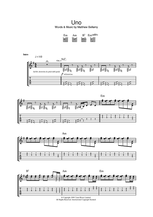 Digital Sheet Music for Uno by Matthew Bellamy, Muse scored for Guitar Tab; id:386959