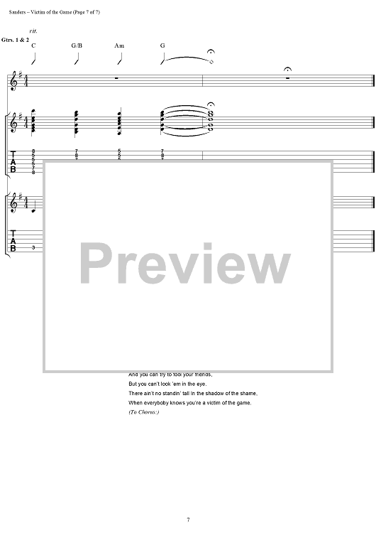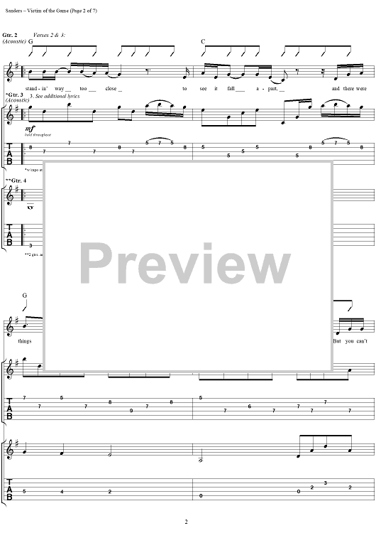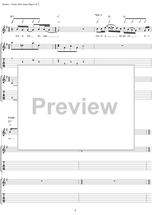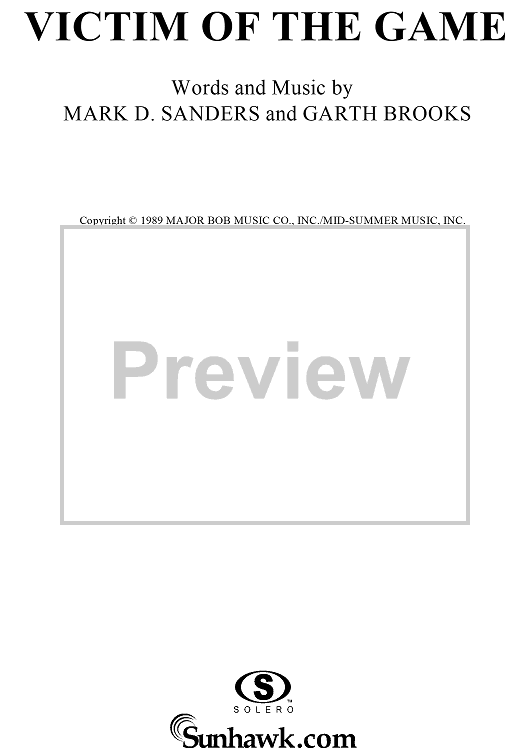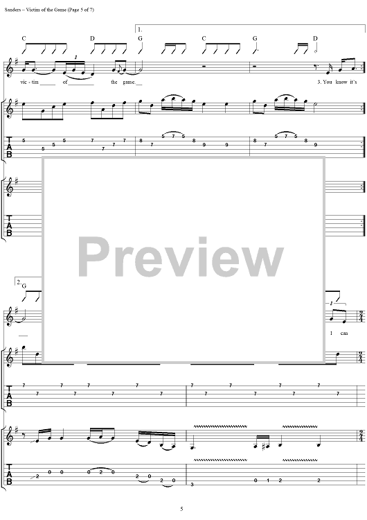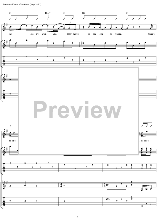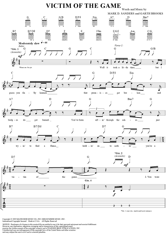 Digital Sheet Music for Victim of the Game by Garth Brooks, Mark Sanders scored for Guitar Tab/Vocal; id:256345